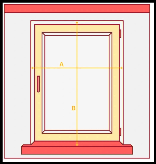 Szerokość A - szerokość wnęki okiennej plus naddatek szerokości dla zniwelowania prześwitów. Zalecamy dodanie co najmniej 5cm. z każdej strony.